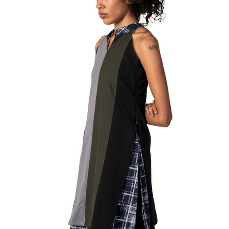 The 404 Kurti is a bold reimagining of traditional form through a streetwear lens. With multi-colored terry panelling on the front and a contrasting cotton layer beneath, it merges texture, tone, and structure in unexpected harmony. This unique blend of fabrics and colors makes it a true statement piece—eye-catching yet effortlessly wearable.