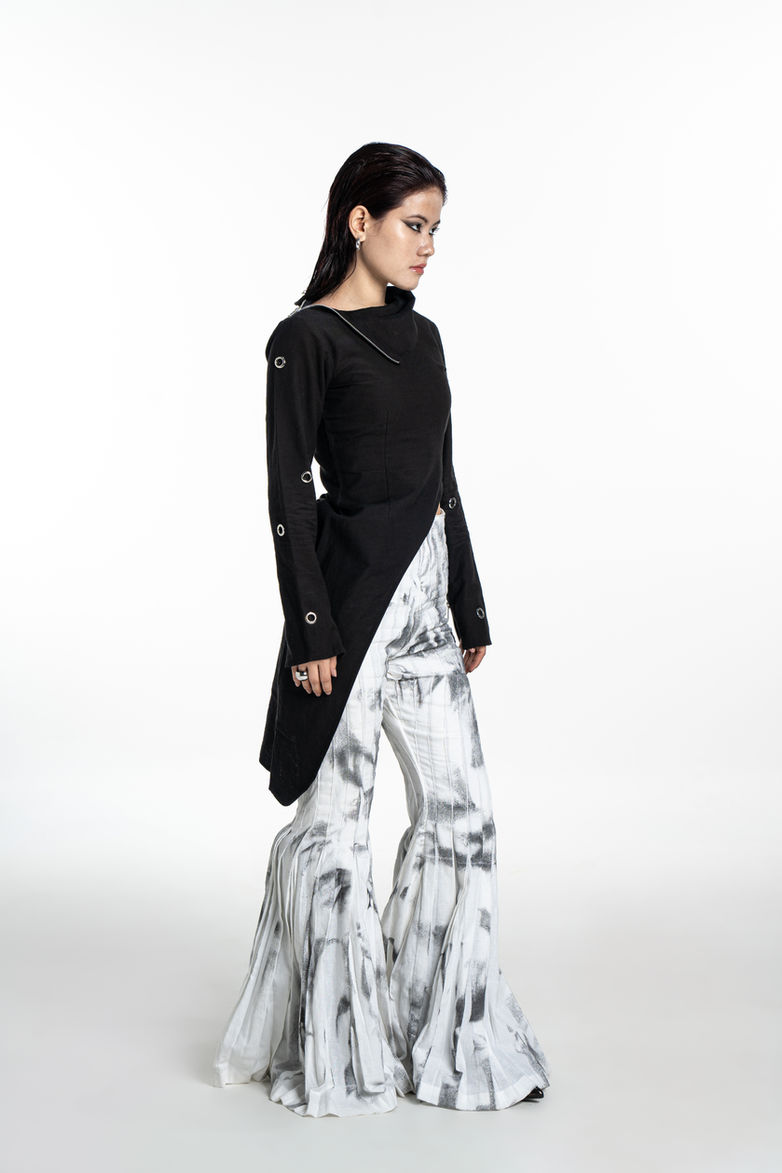 A modern twist on classic elegance. Crafted from breathable linen, this top feature a lopsided, asymmetrical design that hugs the body beautifully. With full sleeves for added coverage, it's perfect for staying stylish and comfortable in any weather. Embrace effortless chic with our Asymmetrical Linen Top, designed to keep you cool and confident all day long.