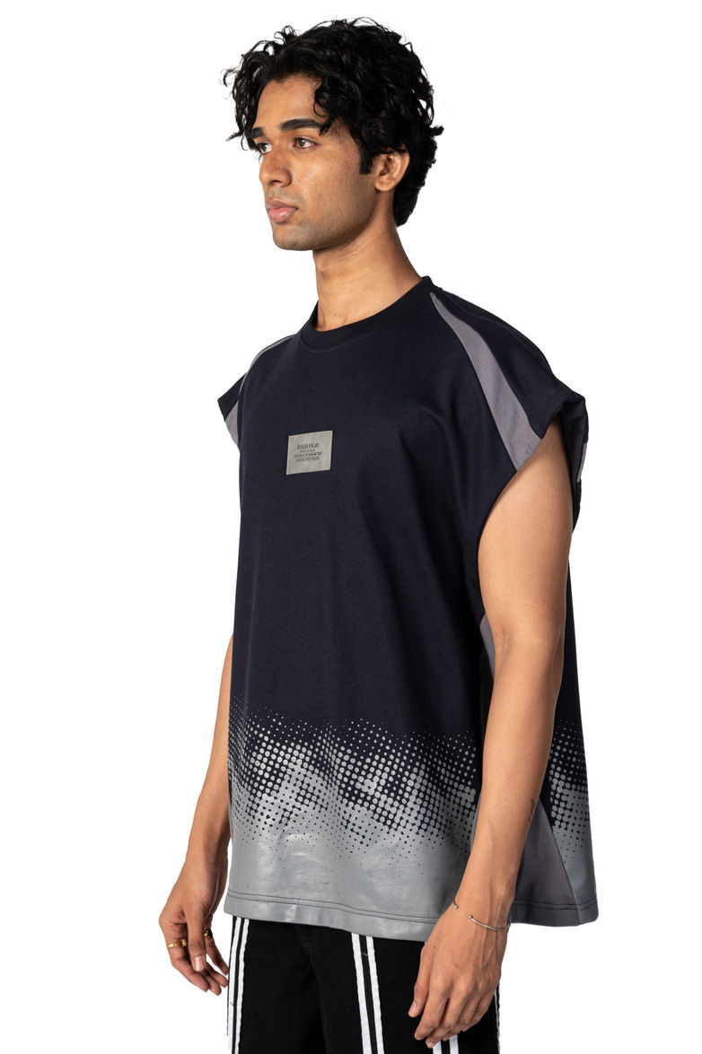Inspired by the city’s fading skylines and unnoticed grids, this oversized tank features tonal grey screen printing that mirrors the static hum of urban life. Raw-cut sleeves, contrast panels, and a relaxed fit bring structure to the everyday blur.