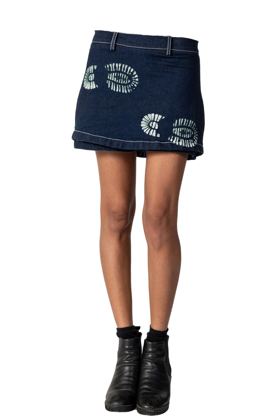 The Step Off Skirt captures the imprint of everyday motion with footprint marks pressed into denim available in both black and blue. A structured silhouette meets raw storytelling, turning a simple walk into a visual narrative. Minimal, intentional, and quietly disruptive—each step speaks.